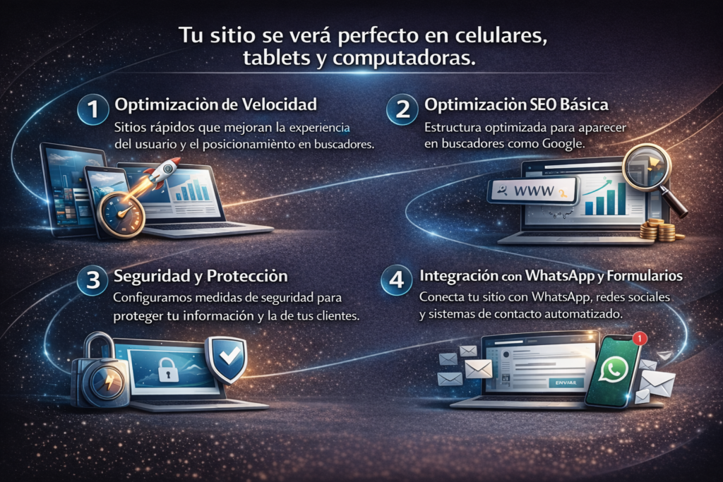 Tu sitio se verá perfecto en celulares, tablets y computadoras.