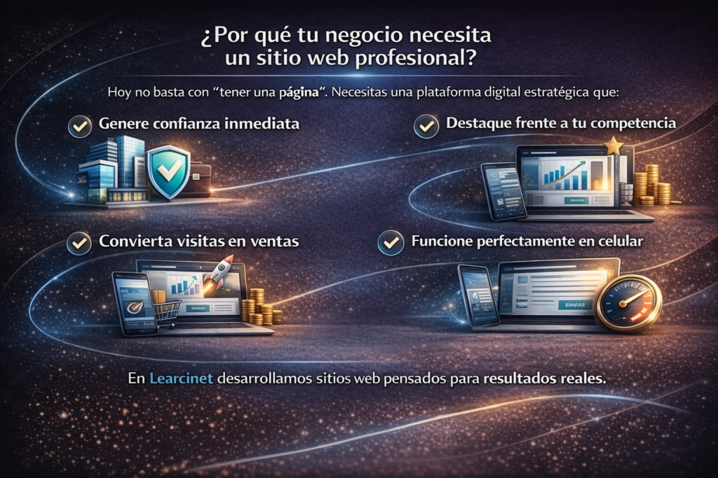En LEARCINET desarrollamos sitios web profesionales que combinan diseño premium, tecnología avanzada y estrategia digital para convertir visitantes en clientes.