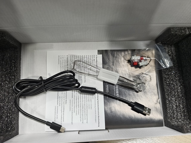 Lo he recibido y el sonido del teclado es excelente. y thocky. También incluye USB-C, extractor de teclas y manual.