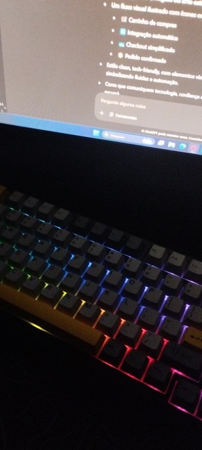 Simplesmente a melhor compra que fiz nos últimos mese, pesquisei muito sobre o teclado e os switches dele, que são ótimos, som bem agradável, boa resposta e uma digitação suave. Achei o tempo de resposta muito bom pelo 2.4ghz, a ilustração e os modos de iluminação são simplesmente lindos, a tela tft da todo um charme no teclado. Eu fiz algumas modificações nele, troquei alguns switches pelos Flamingo da Epomaker, mas não que os Flying Fish sejam ruins, apenas questão de gosto, e também coloquei teclas pudding rosa e brancas para combinar mais com o setup e deixar o rgb mais aparente. Bom, o teclado é realmente ótimo em todos os aspectos, consegui pagar uma valor bem razoável mesmo com as taxas e chegou em 10 dias corridos em Ctba-Pr. ⋆ 𐙚⋆ 𐙚⋆ 𐙚⋆ 𐙚⋆ 𐙚⋆ 𐙚⋆ 𐙚⋆ 𐙚⋆ 𐙚⋆ 𐙚⋆ 𐙚