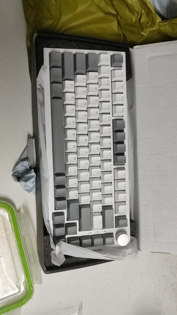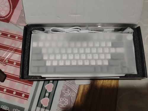 Box didn’t come so pretty but the keyboard sure is! It has a really nice weight to it and seems good. Sound and feel is pretty good as is if you like clacky/clicky noises. Came in exactly 1 week and totally recommend for anybody looking for a hot swappable budget keyboard.