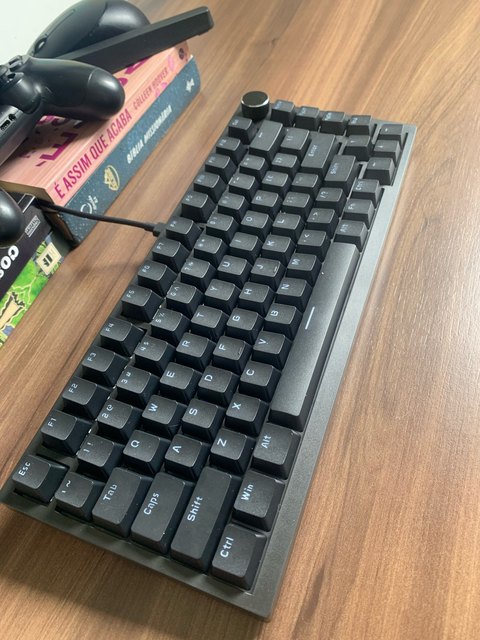 O teclado é excelente e atendeu plenamente às expectativas, pois eu já havia pesquisado previamente sobre o modelo. A digitação é confortável e significativamente mais silenciosa quando comparada a switches azuis, o que melhora bastante a experiência de uso. Como ponto de atenção, ele é um pouco mais pesado em relação a outros que já possuo. A embalagem apresentou algumas avarias em outras partes, além da que mostrei na imagem; no entanto, o produto chegou em perfeito estado, totalmente funcional e sem danos.