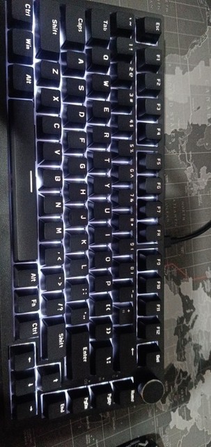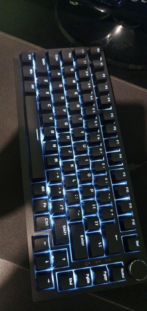 Realmente me gustó. Pesado, símbolos que dejan pasar la luz, retroiluminación blanca, sonido de teclas mecánicas. El control de volumen es un amor aparte. Si algunas teclas hacen clic, puedes comprar nuevas teclas.