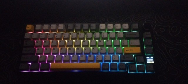 Teclado excelente por el precio. Razonablemente grave y no demasiado ruidoso. El software deja un poco que desear, pero no me molesta demasiado modificar el RGB o la pantalla. También funciona en Linux, no solo en Windows y Mac.