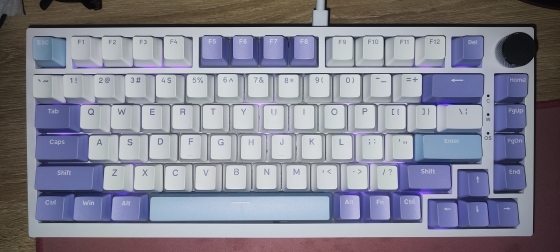 El switch azul tan esperado. He estado usando solo switches lineales últimamente, así que la sensación de clic de los switches azules es nostálgica, y he reconfirmado la bondad de los switches azules. El diseño de teclas también es bueno, así que a este precio, es una gran oferta.