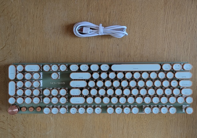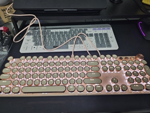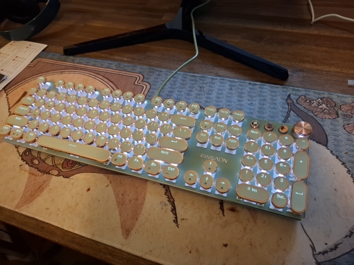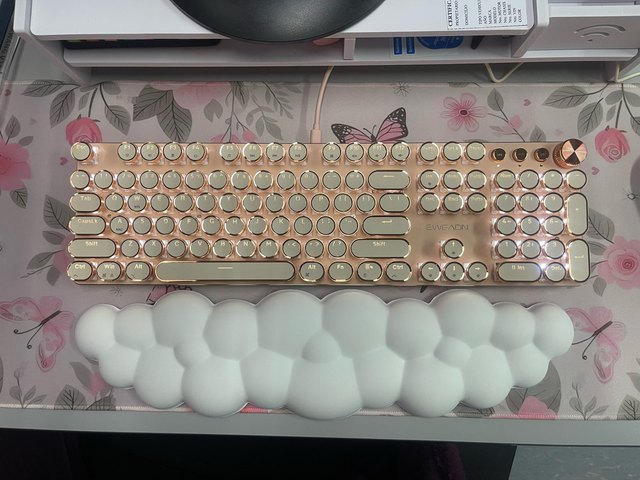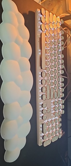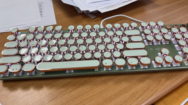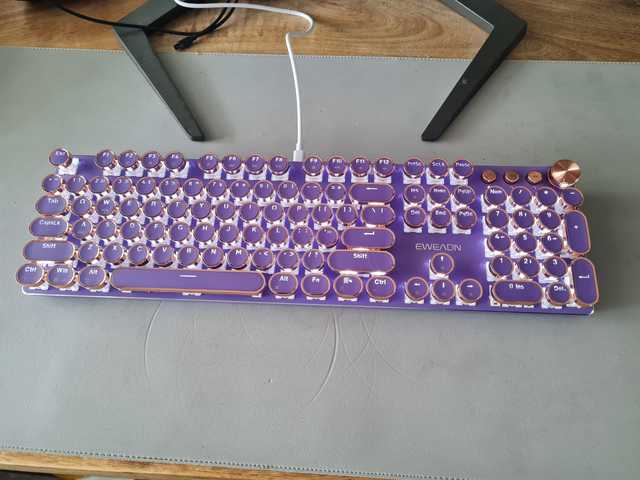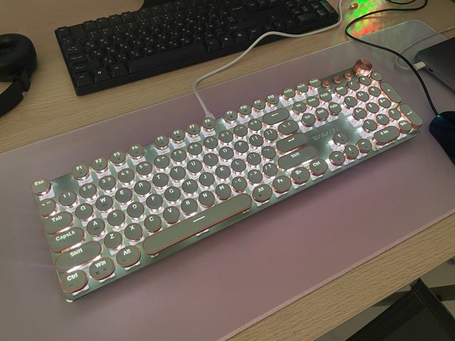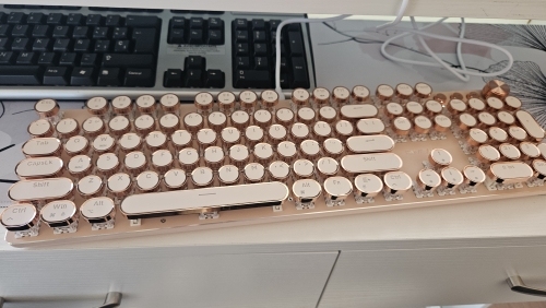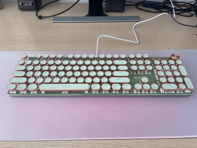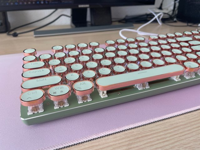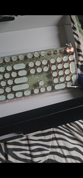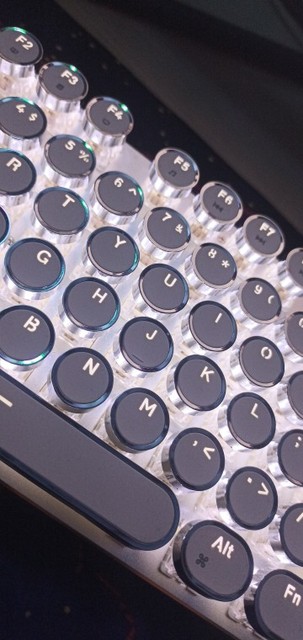 ¡Es tan lindo! Hay muchas maneras diferentes de mostrar la luz que proviene de las teclas y se ve fiel a la imagen. Compré la versión inalámbrica, por lo que fue un poco cara, por lo que por el precio desearía que el sonido de las teclas tuviera más clic y que realmente sonara como si estuviera usando una máquina de escribir, pero en general estoy satisfecho con él. Dicho esto, la calidad podría ser mejor ya que se siente como si las teclas se desprenderían si se usan un poco más agresivamente o si eres un typerr rápido, así que ten en cuenta si estás pensando en comprarlo para jugar. Sinceramente espero que dure mucho.