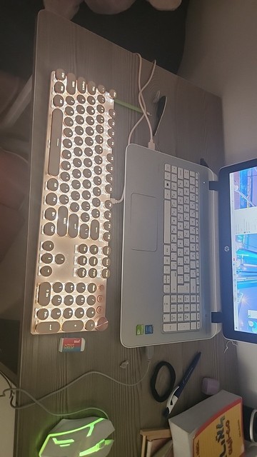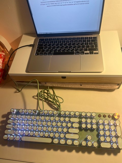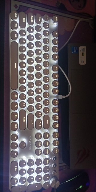 ¡Estoy más que contento con el teclado! Tiene muchos modos de iluminación, incluidos los que responden al tacto, lo cual es genial y puedes ajustar el brillo. El sonido al escribir es satisfactorio (no demasiado bajo), lo cual a mí personalmente me gusta. Las teclas responden muy bien, similar al teclado de una MacBook, lo cual es ideal para mí porque escribo rápido. No parece ser frágil. Y ya es obvio, ¡pero es increíblemente hermoso! Muchas gracias al vendedor. ☺️