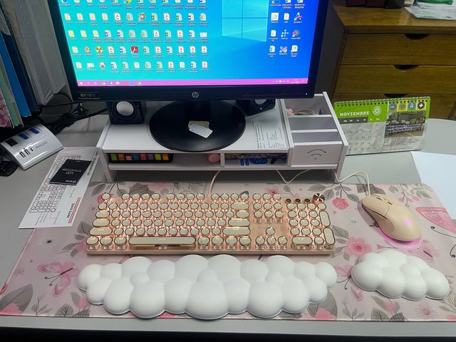 Por favor!!!! ¡Fui la estrella de la oficina esta mañana! ¡No podía presumirlo lo suficiente! ! 😂 Luego lo guardamos para que nadie pudiera usarlo y lo reemplazamos con el típico teclado negro que usamos normalmente. 🤓 😂 😂 Estoy disfrutando de mi teclado. El embalaje está un poco deteriorado y desgastado, con rasgaduras y roturas. He recibido dos teclados y las cajas de embalaje en las que venían los productos estaban en muy mal estado. Sería ideal que las tiendas presten atención a este problema.